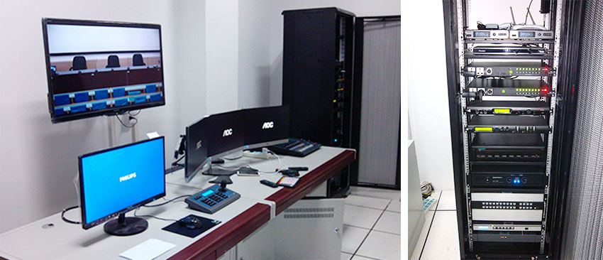 該項目是由我公司負責前期設計以及設備提供和安裝調(diào)試。多功能會議室面積15×15米,整體設計包含以下系統(tǒng):會議擴聲系統(tǒng),多媒體顯示系統(tǒng),手拉手會議系統(tǒng),信號切換系統(tǒng)及中央控制系統(tǒng)。