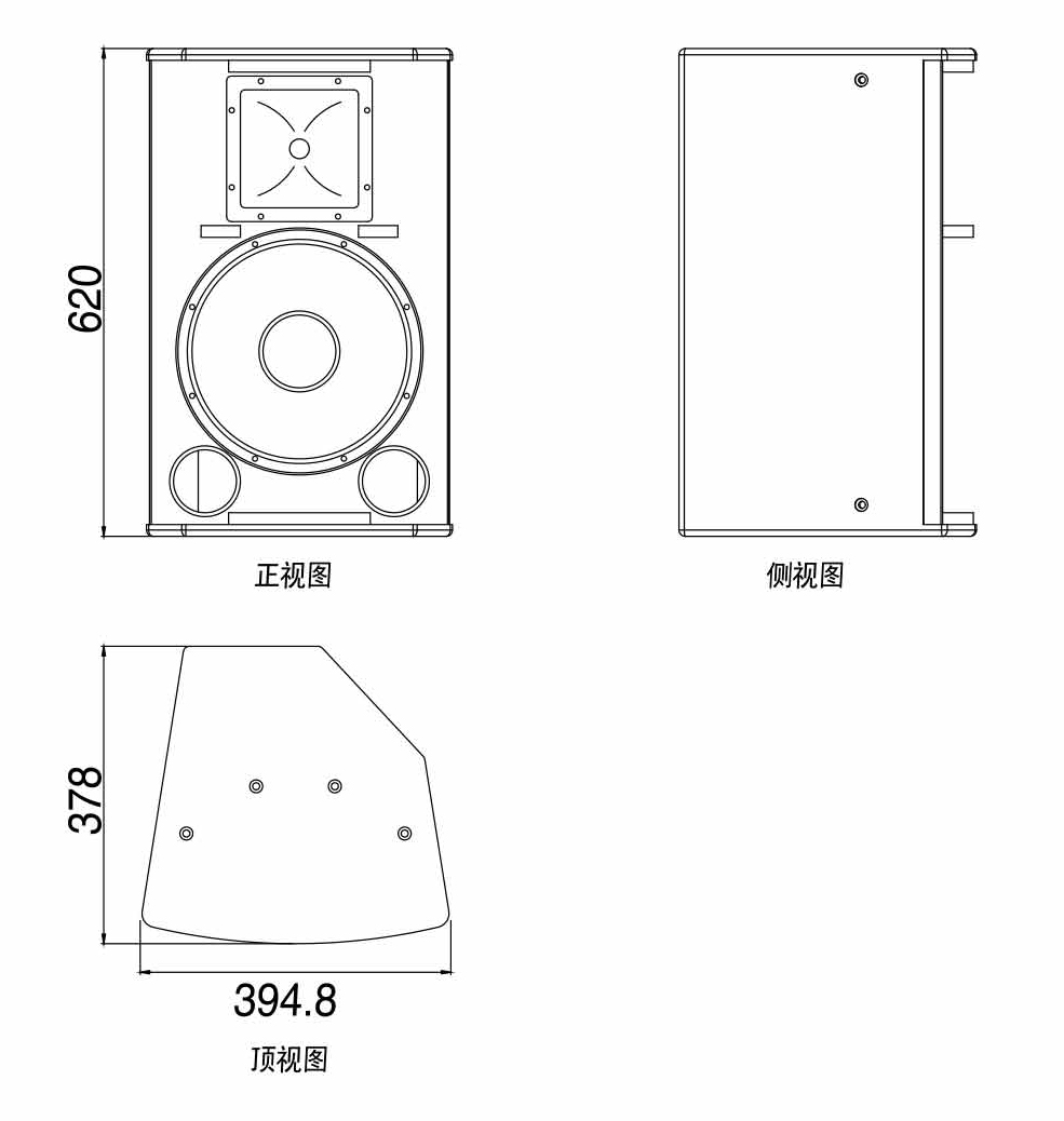 二分頻12英寸低頻驅(qū)動(dòng)單元和1.4英寸壓縮驅(qū)動(dòng)高音單元組成的全頻音箱。