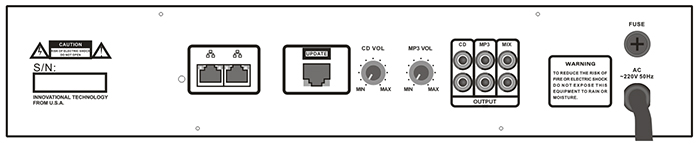 ●一路獨立MP3輸出,音量大小可獨立控制。