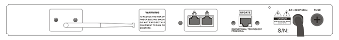 標(biāo)準(zhǔn)RJ45(3個(gè)),10M/100M網(wǎng)口2個(gè),升級(jí)口1個(gè) |